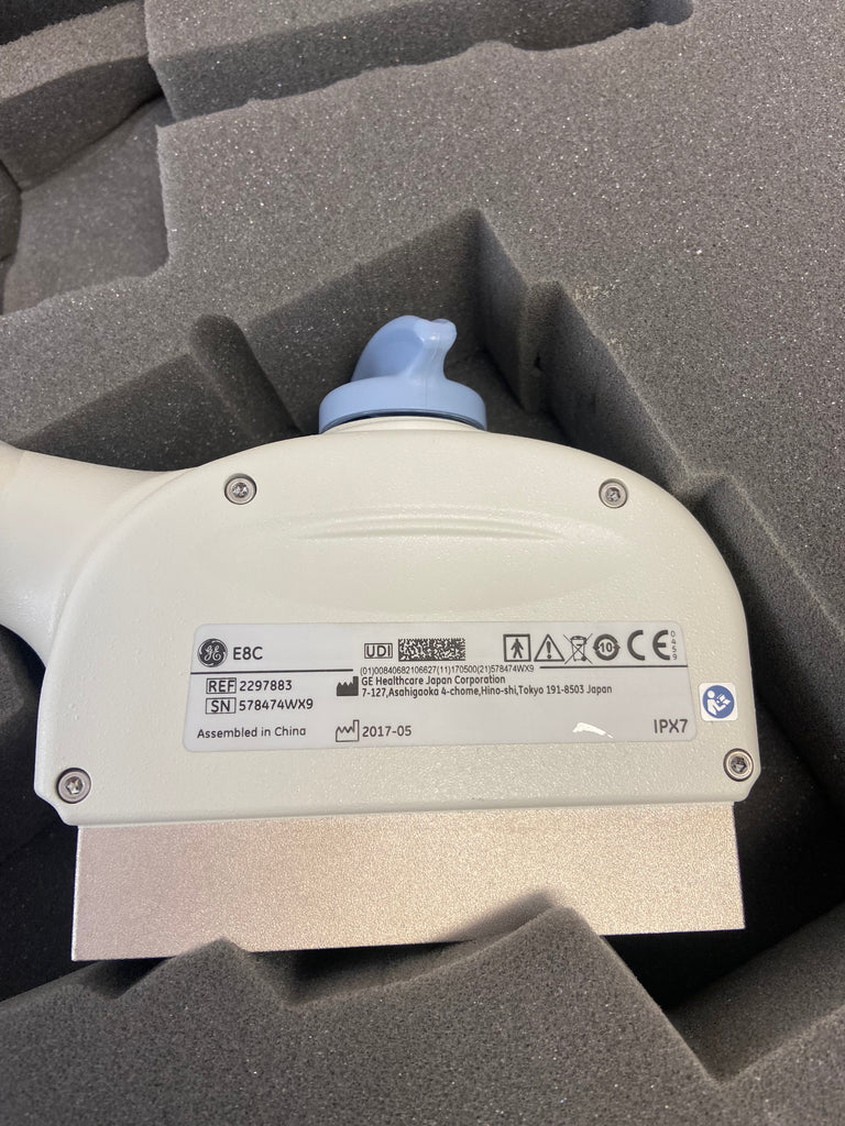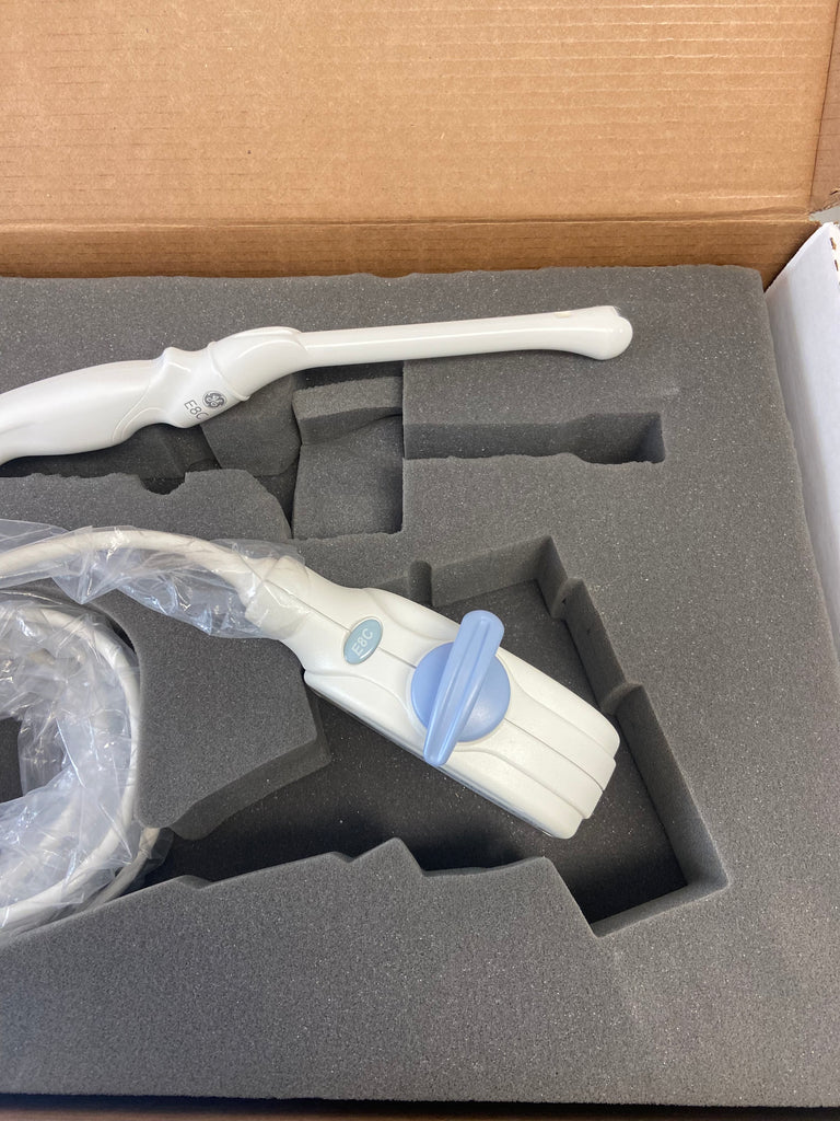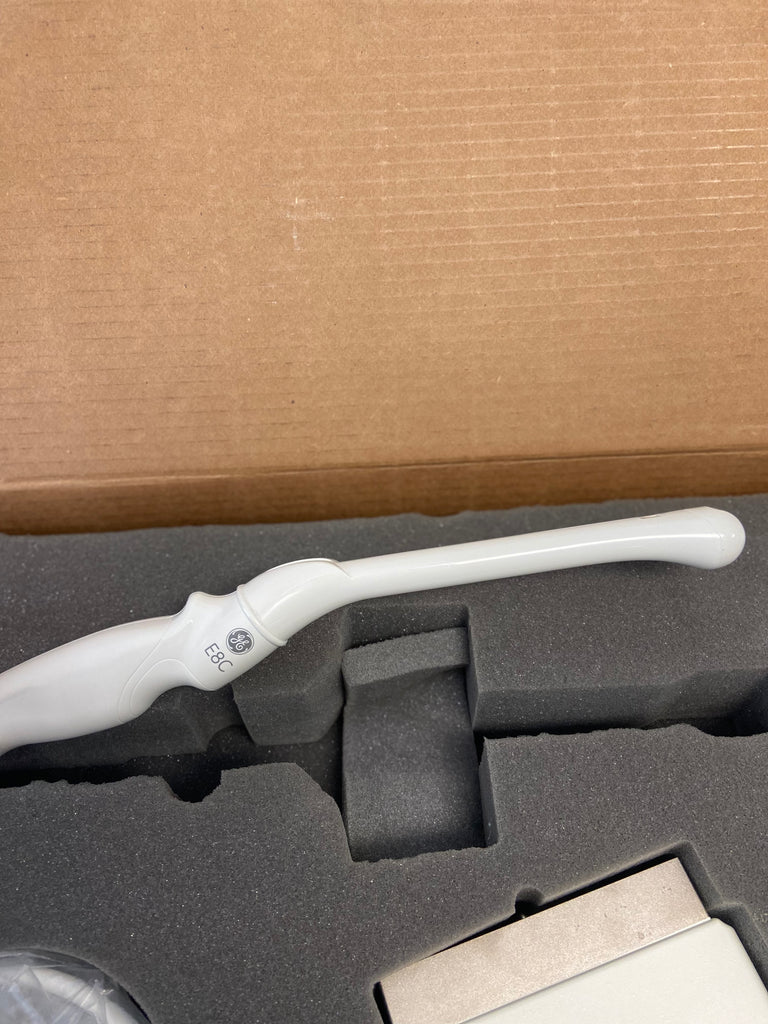 - The GE E8C is a transvaginal ultrasound transducer probe. The GE E8C is used with OB/GYN and urology clinical applications and exams. This transducer has a frequency range of 3.5 to 11.5Mhz. The GE E8C is in excellent condition and is compatible with the GE Logiq and Vivid series ultrasound systems.